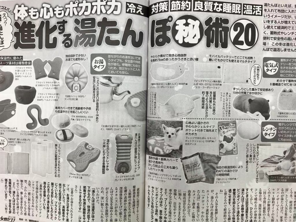 その特集では、“進化する湯たんぽマル秘術20”として紹介され、編集部の注目を集めました。