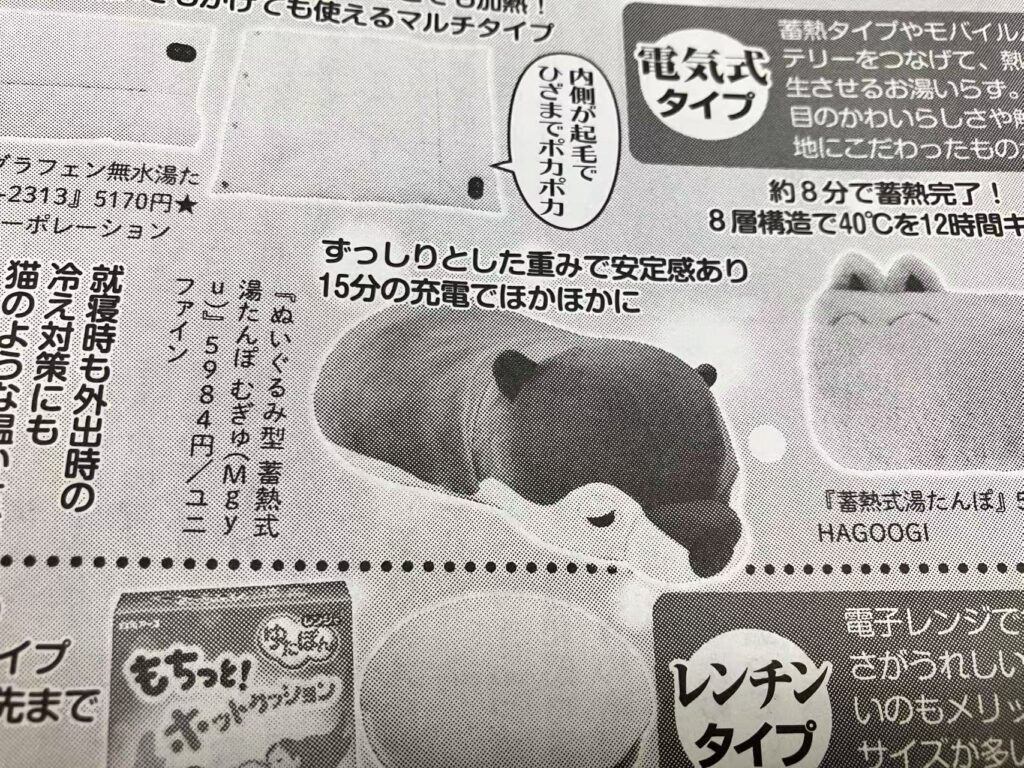 この冬、大人気のユニファイン蓄熱式湯たんぽ『むぎゅ(Mgyu)』女性週刊誌に掲載されました!