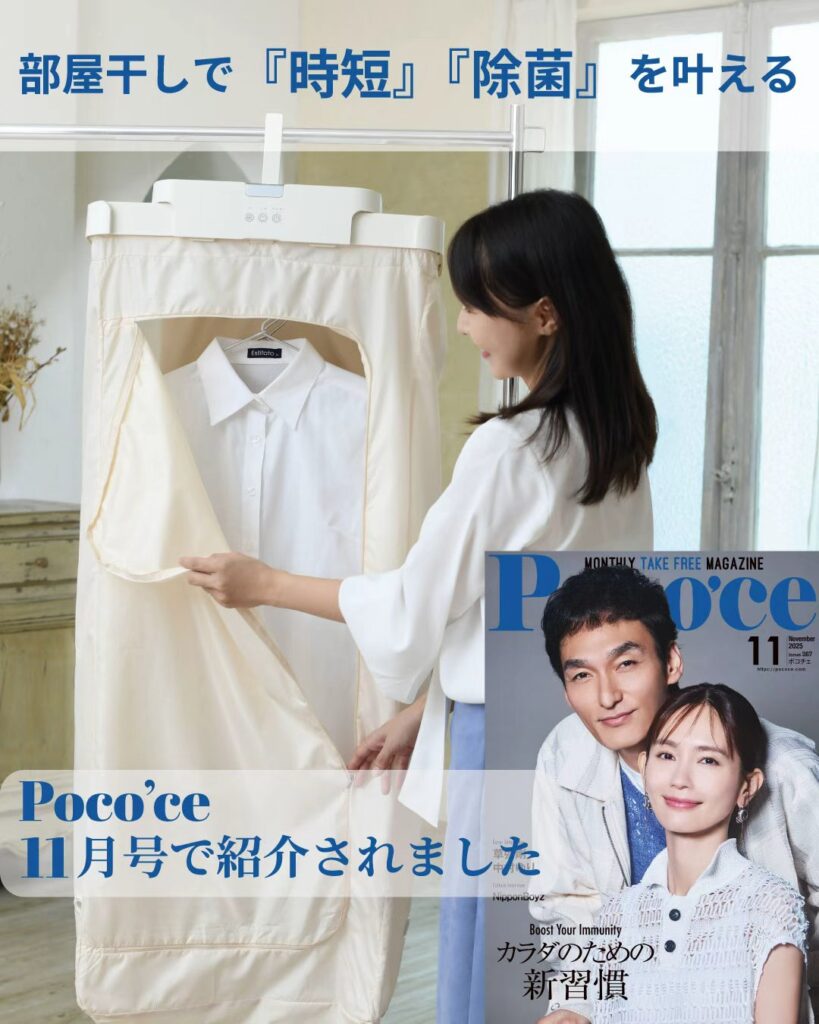 このたび、働く女性向けマガジン「Poco'ce」ポコチェにて「伸縮自在衣類乾燥機」を掲載していただきました。
