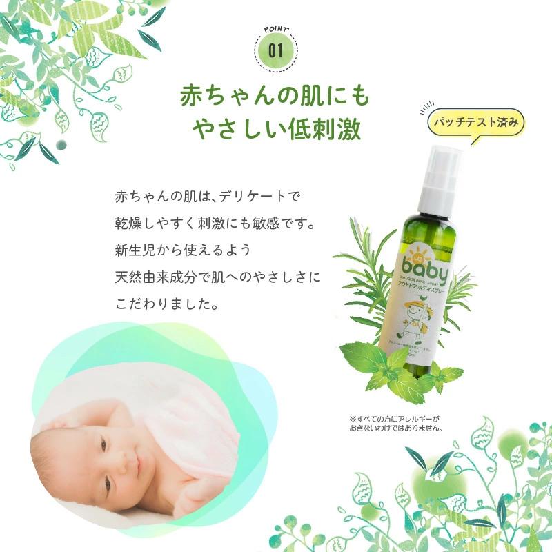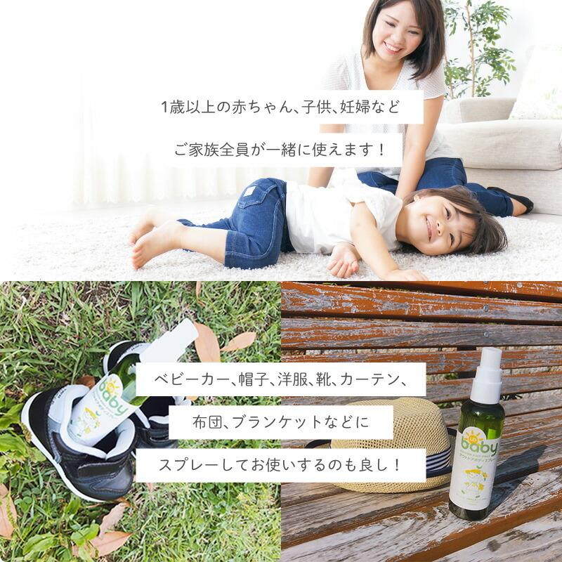 ●赤ちゃんのお肌に直接スプレーすることができ、ご家族全員でお使いいただけます。