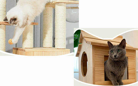 愛猫の好みに合わせてパーツを追加できる設計、愛猫にも人間にも環境にもやさしい素材を選定し、長くご愛用いただける製品の開発に努めております。