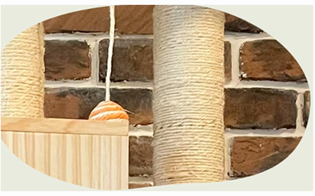 綿麻紐は愛猫が爪とぎ時に好むガリガリ感を保ちながら、カスが出にくく長持ちします。安定性が優れた太めの柱と、多頭飼いでも耐えられる厚みのある頑丈な板、組み立て易くて錆びにくいネジなど、素材から拘ることによって愛着を持っていただけるキャットタワーを目指しています。